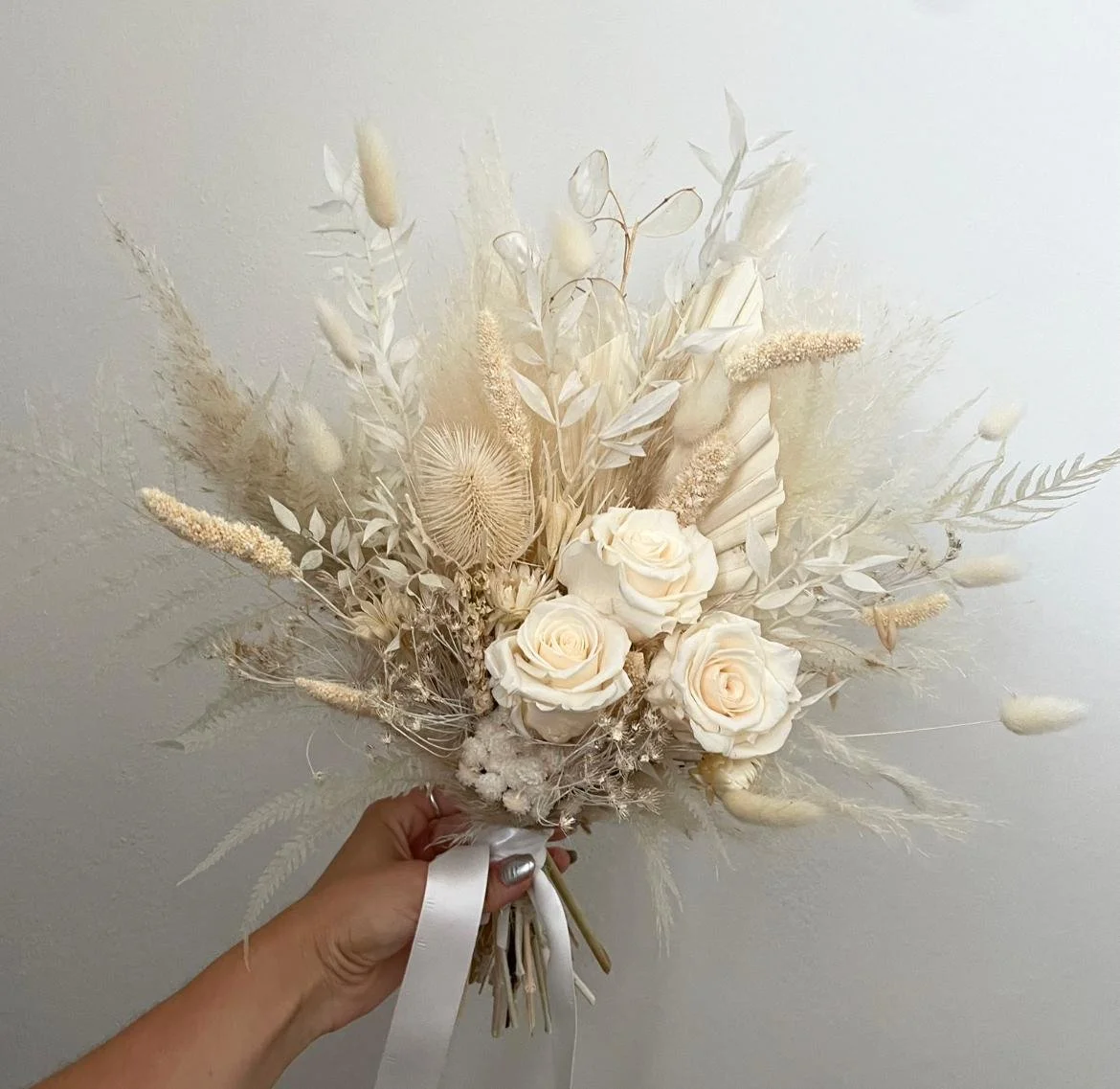 Categories: All Luxe White Bouquet Christmas Collection All | Luxe White Bouquet | Christmas Collection | Luxe White bridal Bouquet £60.00 Dried Flower Baubles (Set of 3) £13.99 Ivory white dried flowers & milk bottle vase £24.99 Trio Vases £25.00 Pampas Wreath £39.99